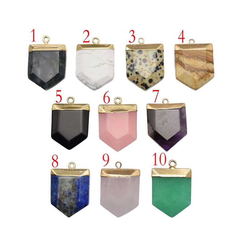 #1 – Jade, #10 – Green Jade, #2 – White Howlite, #3- Dalmatian Jasper, #4 – Jasper, #5 – Onyx, #6 – Rose Jade, #7 -Amethyst, #8 – Lapiz, #9 – Rose Quartz