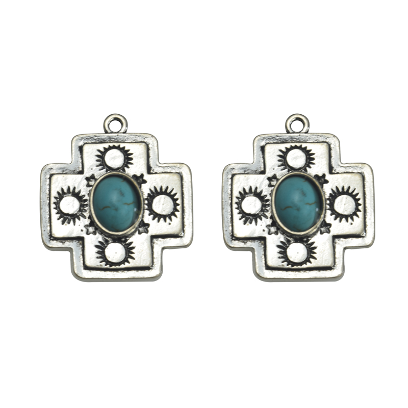 21.5mm Howlite Turquoise with Lead Free Pewter Cross Pendant(B82394) quantity