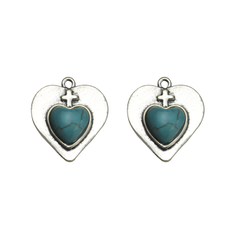 22x19mm Howlite Turquoise with Lead Free Pewter Heart Charm(B82395) quantity
