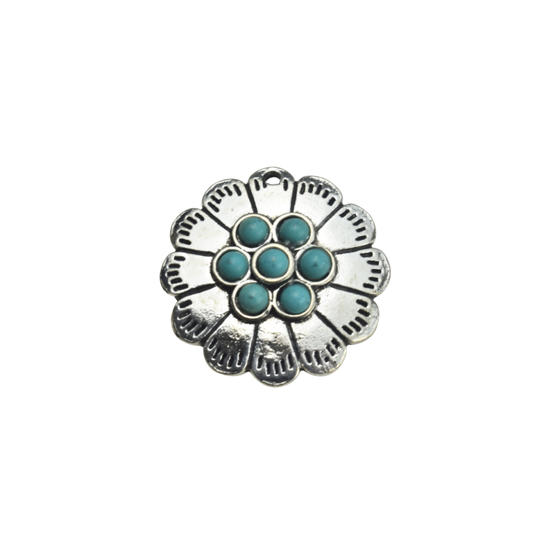 24mm Howlite Turquoise with Lead Free Pewter Flower Charm(B82437) quantity