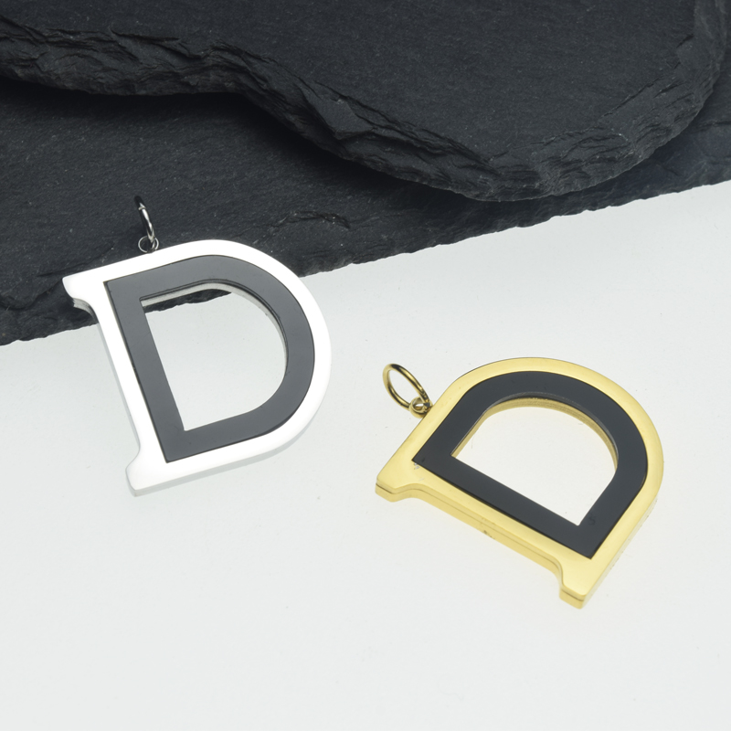 25mm Colorfast Titanium Steel Letter D Pendant quantity