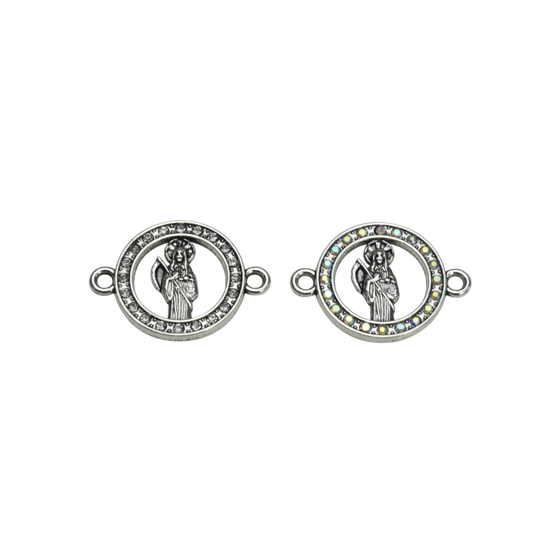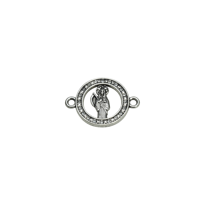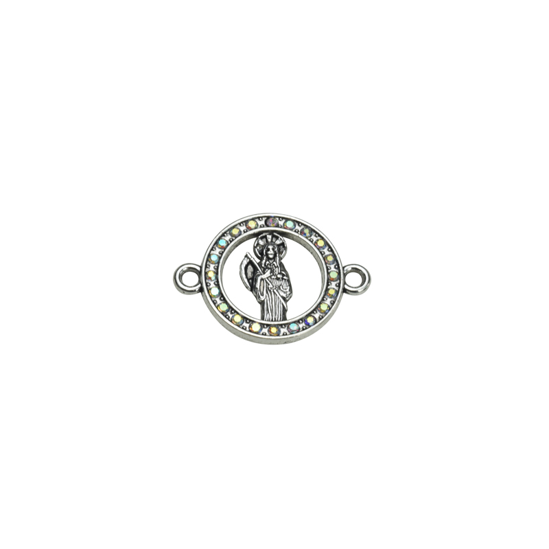 25x18mm Lead Free Pewter (Saint Death) Santa Muerte with Rhinestones Connector A61727