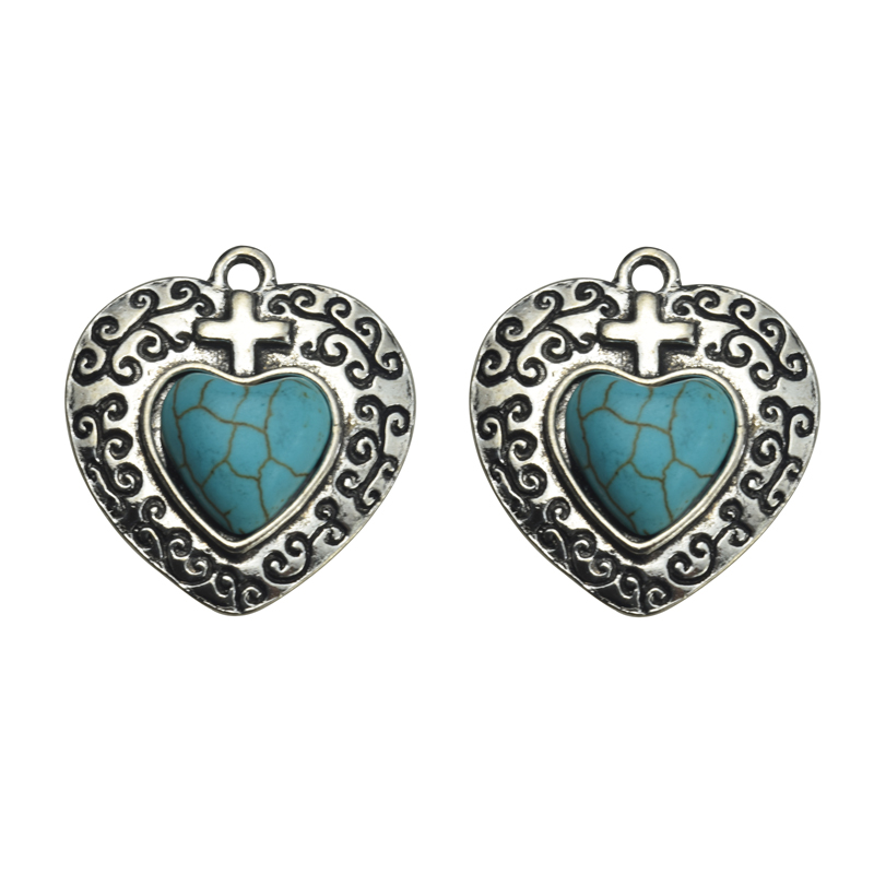 26x23.5mm Howlite Turquoise with Lead Free Pewter Heart Charm(B82396) quantity