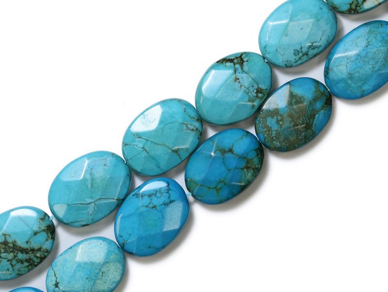 28x20mm High Quality Faceted Blue Turquoise Oval Bead Strand (15 Inches Long) quantity