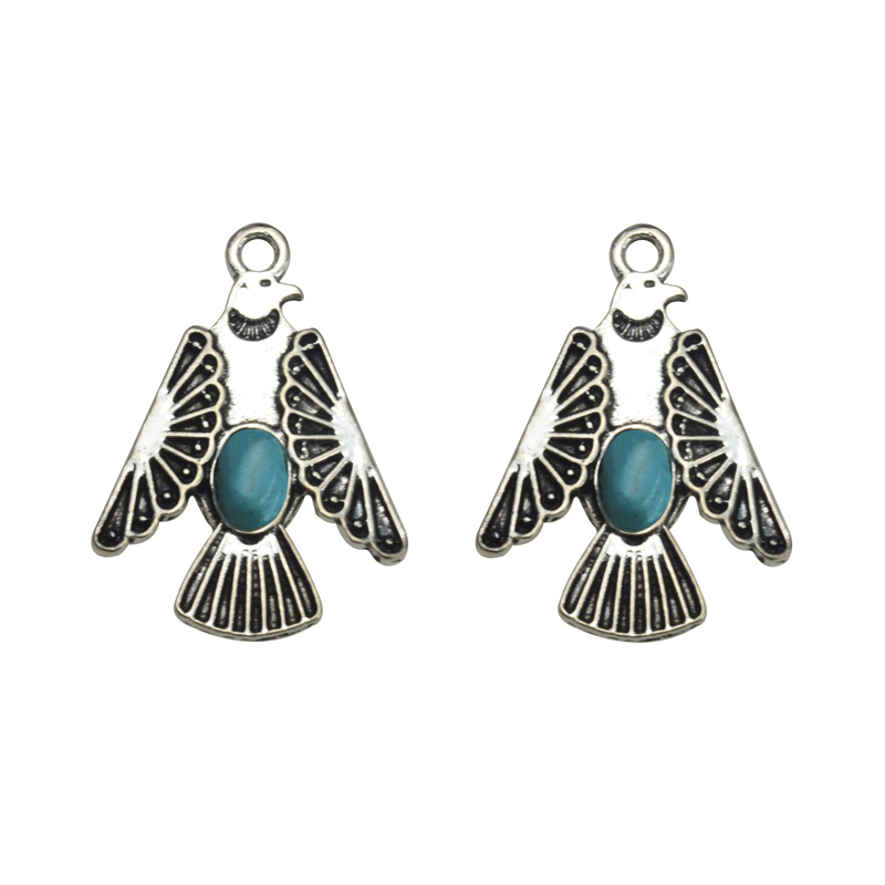 28x20mm Howlite Turquoise with Lead Free Pewter Bird Charm(B83365) quantity