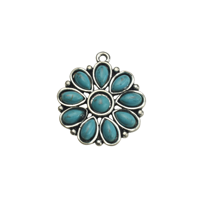 28x25mm Howlite Turquoise with Lead Free Pewter Flower Charm(B82470) quantity