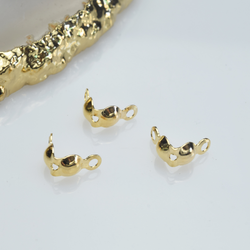 3.2x4mm 14K Gold Plated Ribbon End Cord Clasps for Jewelry Making DYI Supplies(2X987) quantity