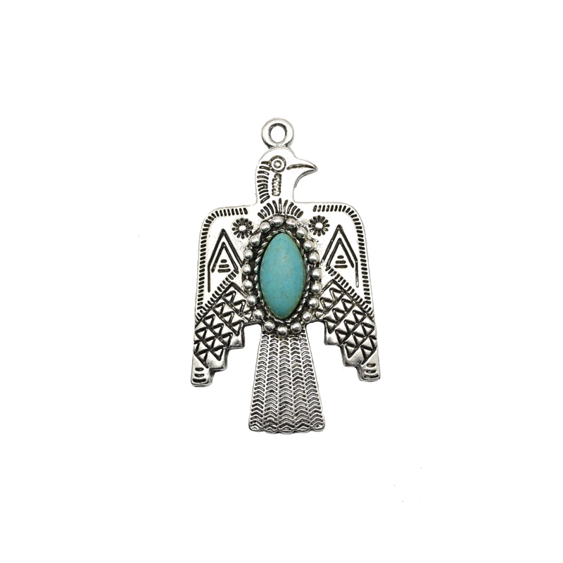 31x27.5mm Howlite Turquoise with Lead Free Pewter Bird Charm(B73001) quantity