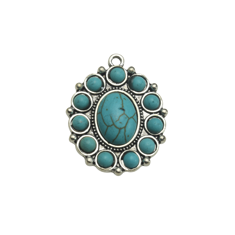 32.5x26mm Antique Silver Green Howlite Turquoise Lead Free Pewter Tibetan Boho Style Pendant(B79248) quantity