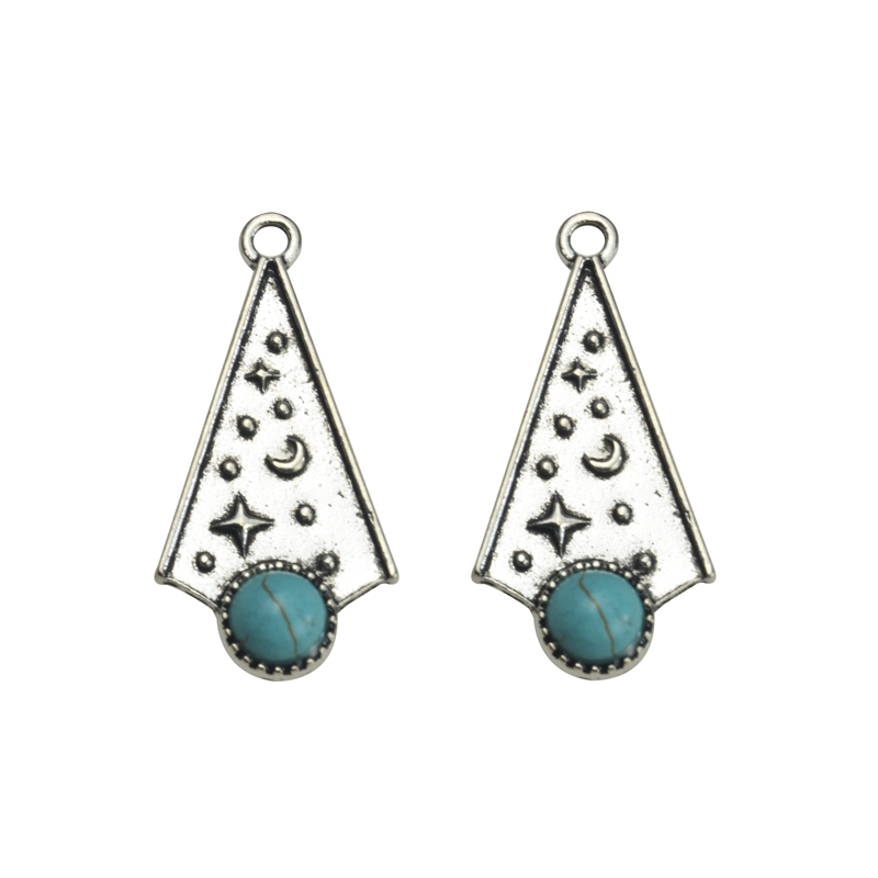 32x16mm Antique Silver Green Howlite Turquoise Lead Free Pewter Tibetan Boho Style Pendant(B83366) quantity
