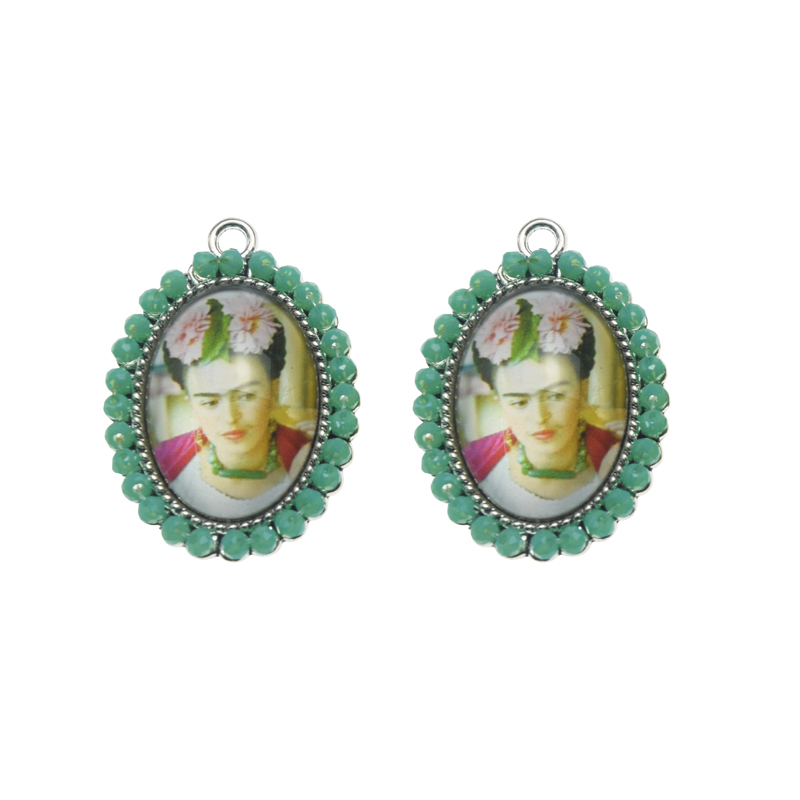 33x26mm Frida Kahlo Crystal with Lead Free Pewter Bezel Pendant (A39099) quantity