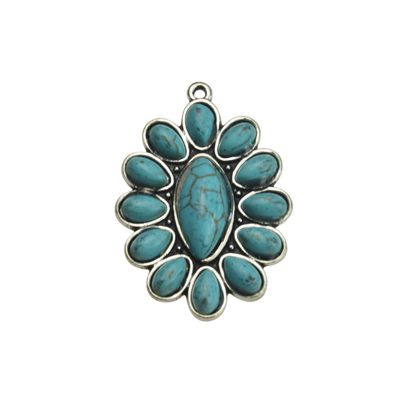 35x25mm Antique Silver Green Howlite Turquoise Lead Free Pewter Tibetan Boho Style Pendant(B79249) quantity