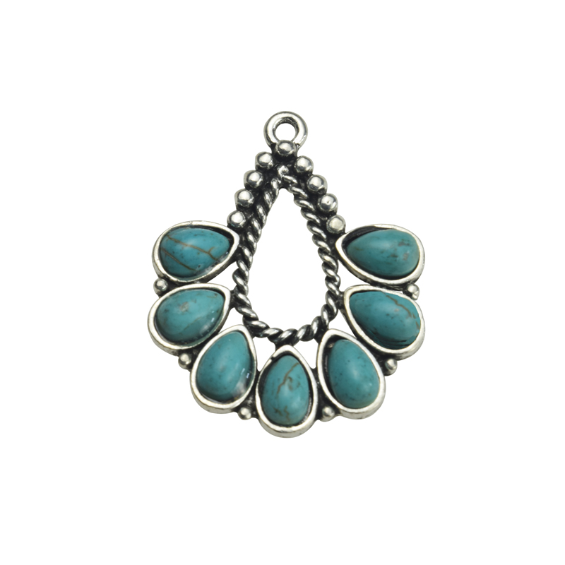 35x28mm Antique Silver Green Howlite Turquoise Lead Free Pewter Tibetan Boho Style Teardrop Pendant(B79159) quantity