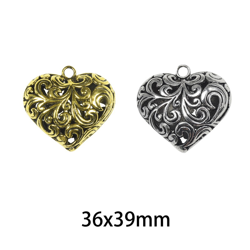 36x39mm Lead Free Pewter Hollow Heart Charm A12502 quantity