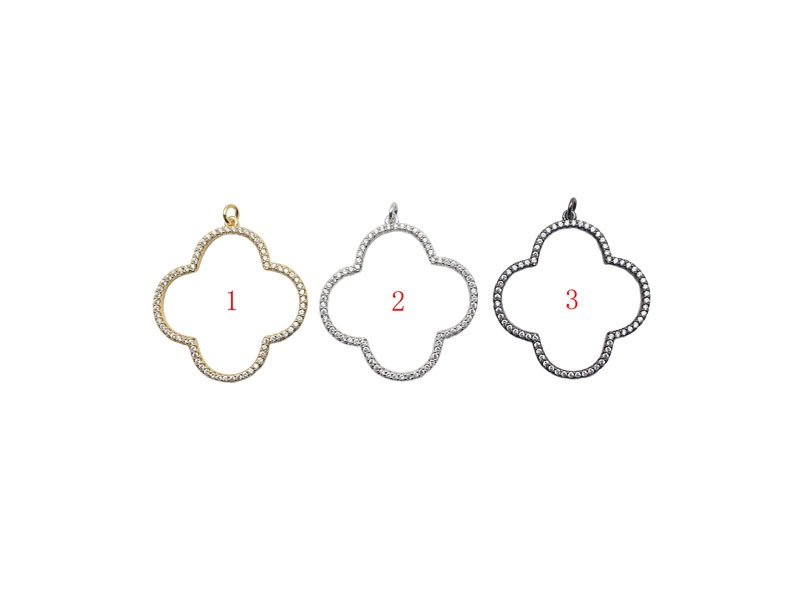 37mm Flower, Quatrefoil CZ Gold/Silver Pave Pendant quantity
