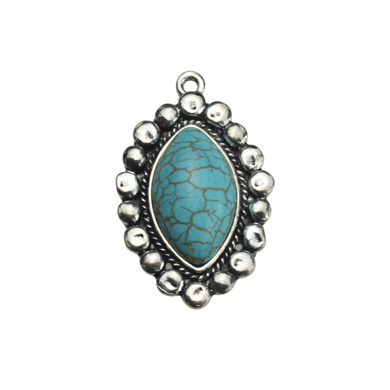 37x23.5mm Antique Silver Green Howlite Turquoise Lead Free Pewter Tibetan Boho Style Pendant(B79160) quantity