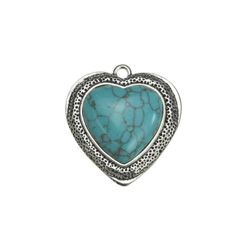 38x35mm Howlite Turquoise with Lead Free Pewter Heart Charm(B81874)