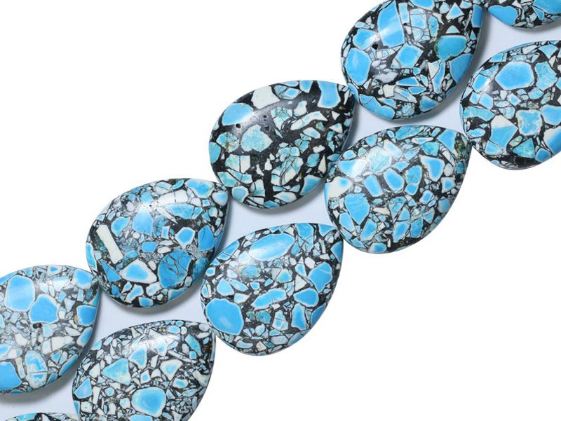39x29mm Smooth Blue Mosaic Turquoise Teardrop Bead Strand, Tortoise Turquoise (15 Inches)
