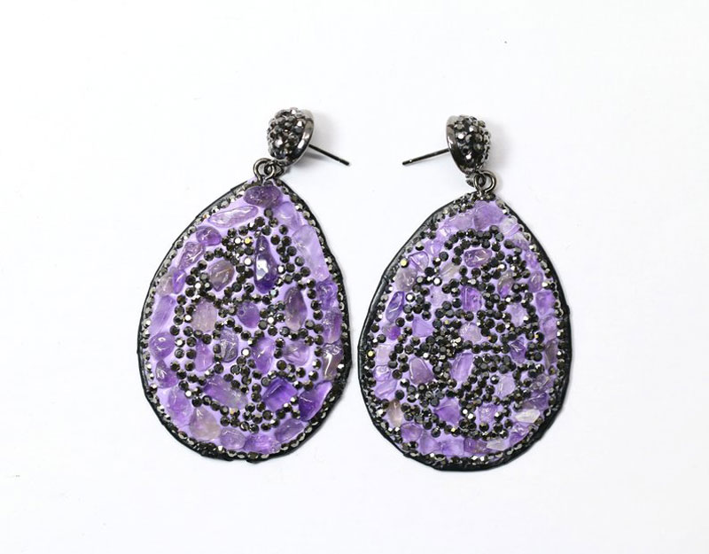 45mmx32mm Amethyst with Pave Rhinestones Teardrop Earring Pair quantity