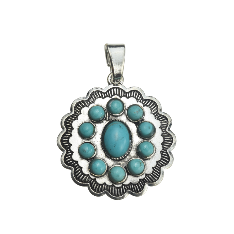 46mm Howlite Turquoise with Lead Free Pewter Flower Charm(B72905) quantity