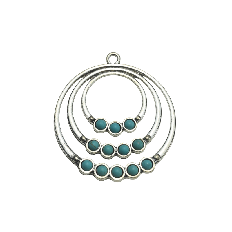 47mm Antique Silver Green Howlite Turquoise Lead Free Pewter Outlined Earring Finding Pendant(B87941) quantity