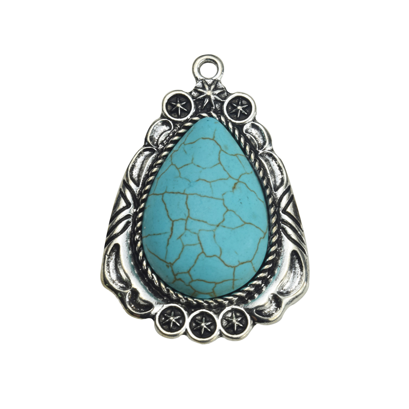 47x32mm Antique Silver Green Howlite Turquoise Lead Free Pewter Tibetan Boho Style Teardrop Pendant(B81978) quantity