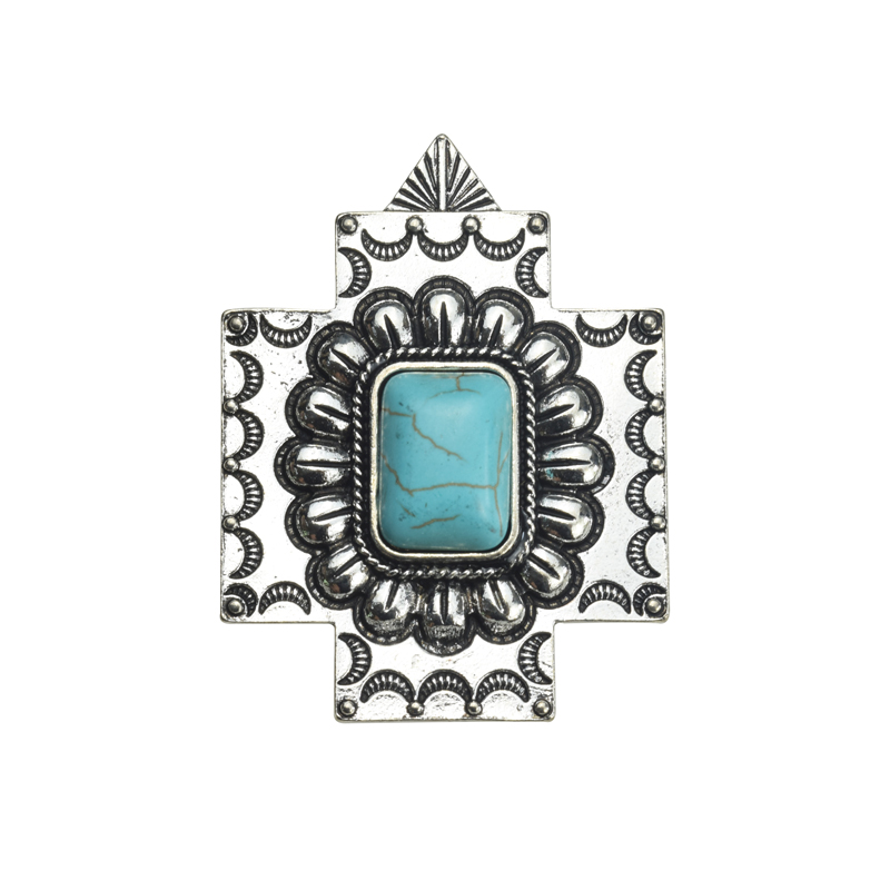 47x35mm Howlite Turquoise with Lead Free Pewter Cross Pendant(B72984) quantity