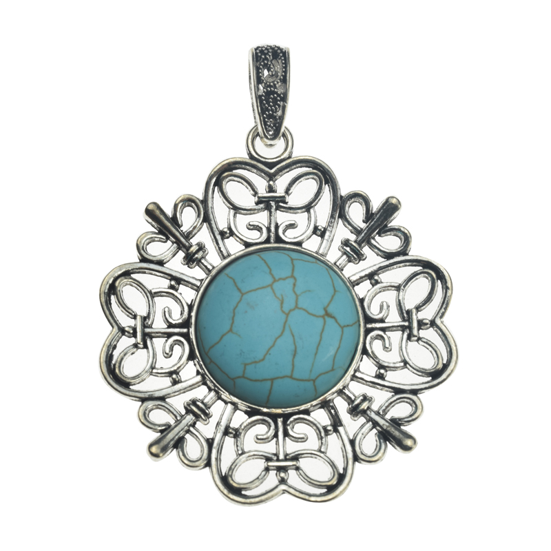 48mm Howlite Turquoise with Lead Free Pewter Flower Charm(B28703) quantity