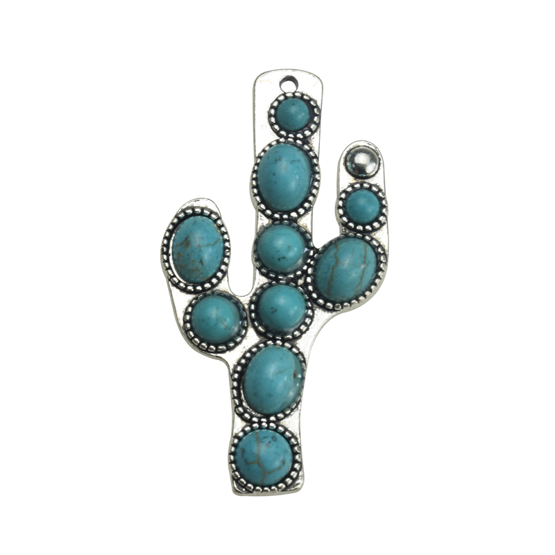51x26mm Howlite Turquoise with Lead Free Pewter Cactus Charm(B40879) quantity