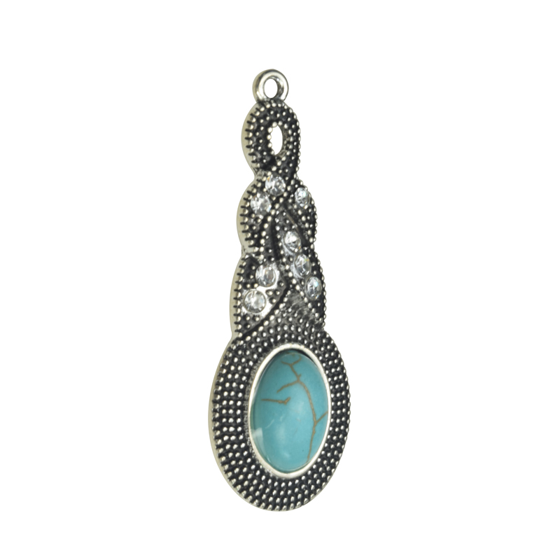 52x20mm Green Howlite Turquoise Lead Free Pewter Tibetan Boho Style Pendant(B80103) quantity