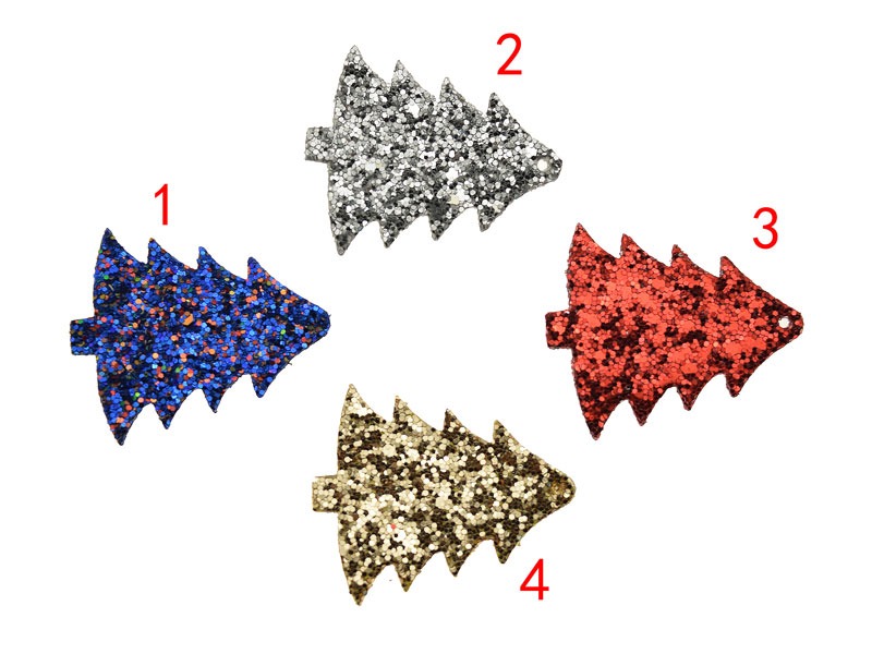 55x47mm Double Sided Faux Glitter Vegan Leather Christmas Tree Pendant quantity