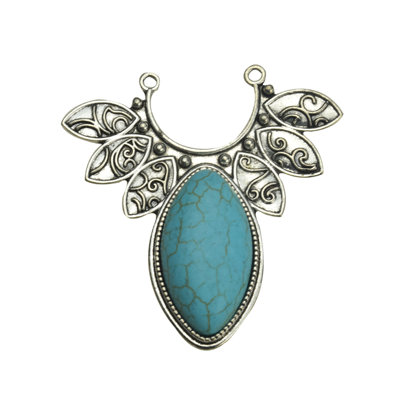 55x53.5mm Antique Silver Green Howlite Turquoise Lead Free Pewter Tibetan Boho Style Pendant(B82035) quantity