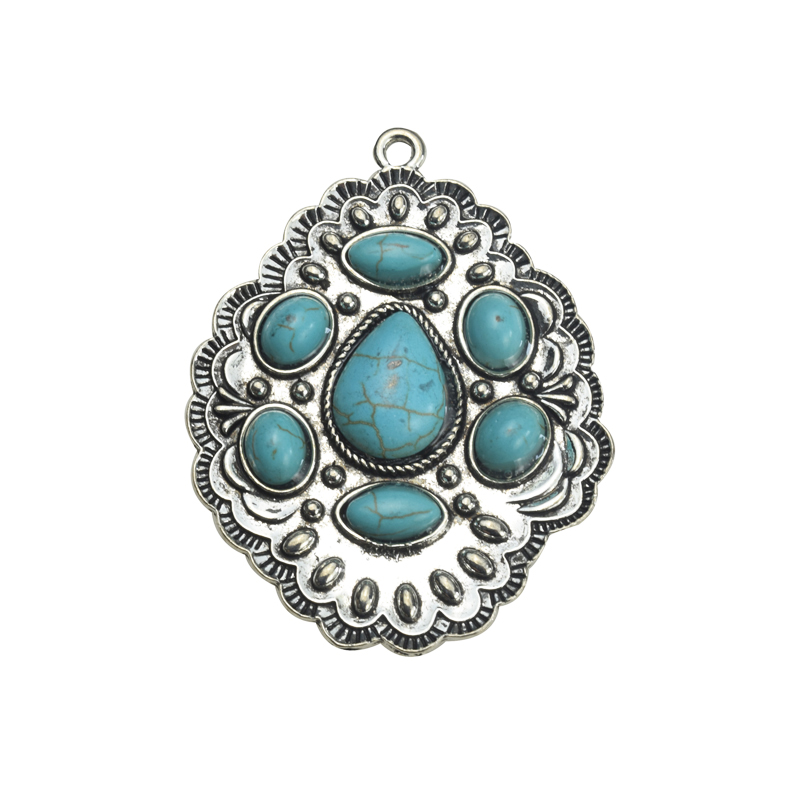56x44mm Antique Silver Green Howlite Turquoise Lead Free Pewter Tibetan Boho Style Pendant(B81977) quantity