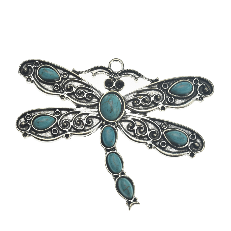 57x45mm Howlite Turquoise with Lead Free Pewter Dragonfly Charm(B83329) quantity