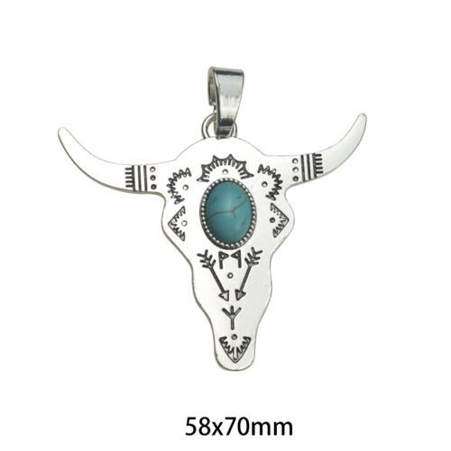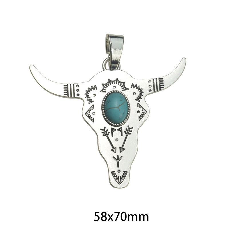 58x70mm Howlite Turquoise with Lead Free Pewter Tauren Charm(B40926) quantity