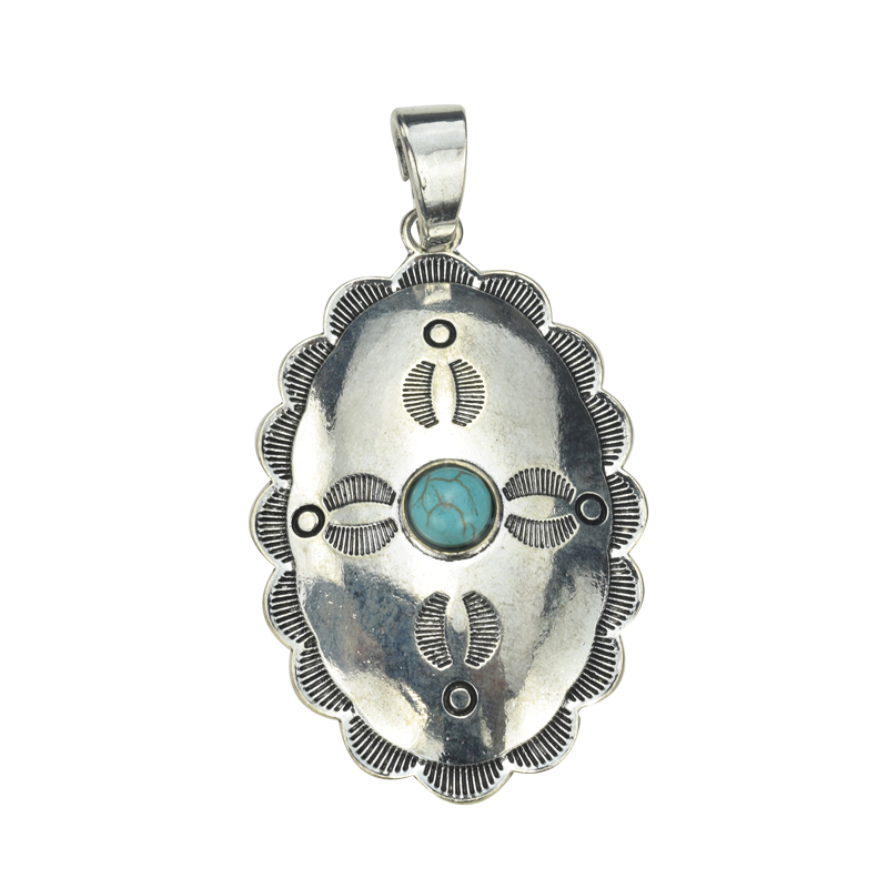 59x41mm Antique Silver Green Howlite Turquoise Lead Free Pewter Tibetan Boho Style Pendant(B75585) quantity
