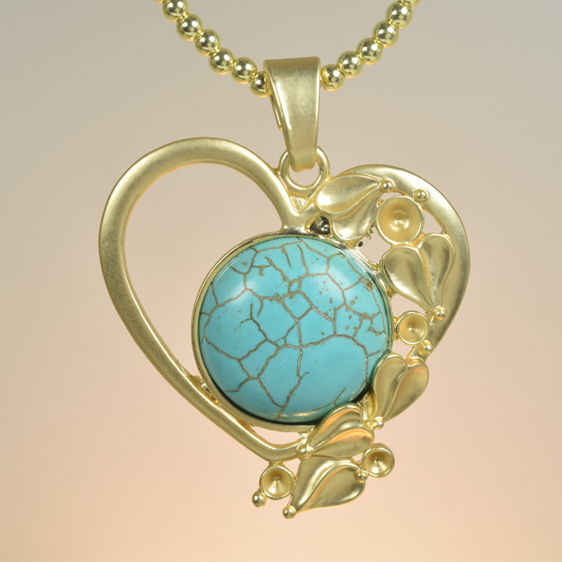 59x50mm Matte Gold Lead Free Bohemian Pewter with Blue Howlite Turquoise Pendant (B73718) quantity