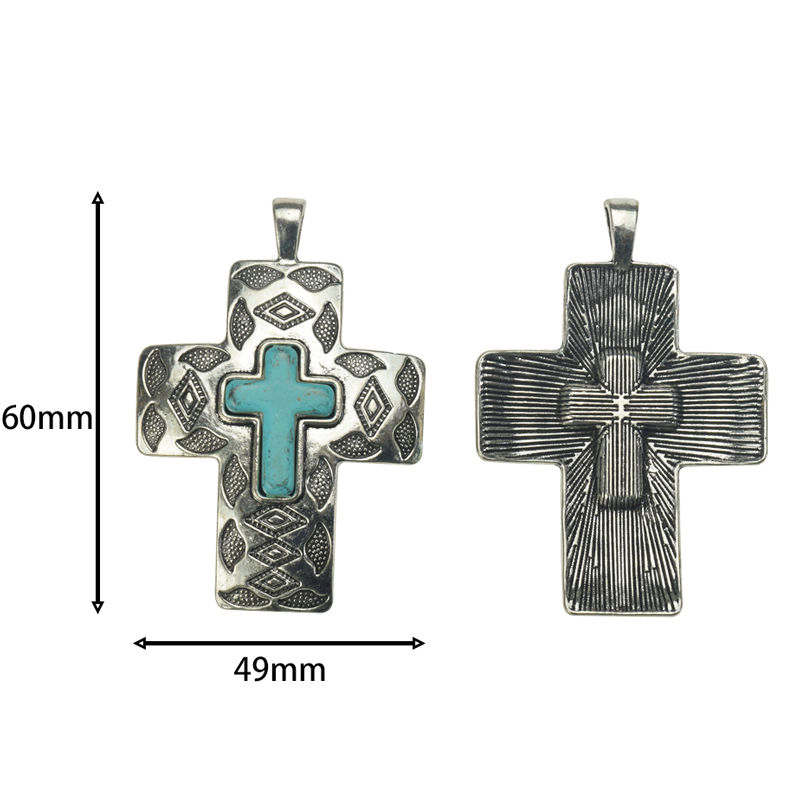 60x49mm Howlite Turquoise with Lead Free Pewter Crosses Charm(A39320) quantity