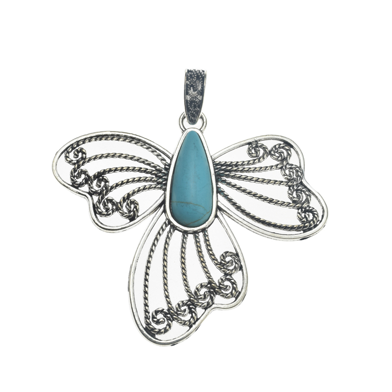 60x68mm Howlite Turquoise with Lead Free Pewter Butterfly Charm(B39768)