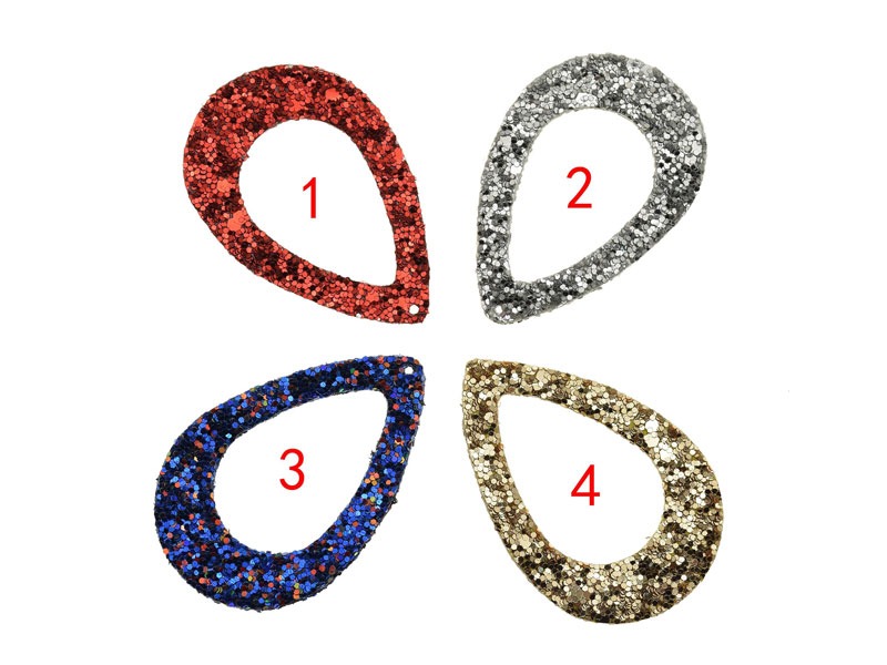 61x40mm Double Sided Faux Glitter Vegan Leather Teardrop Pendant quantity