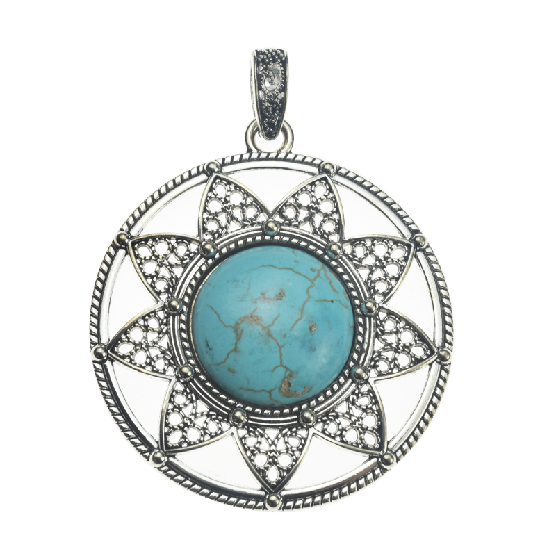 61x55mm Howlite Turquoise with Lead Free Pewter Flower Charm(B41238)