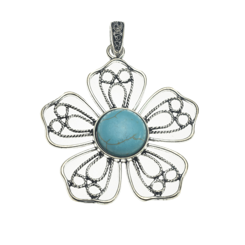 63x58mm Howlite Turquoise with Lead Free Pewter Flower Charm(B39771)