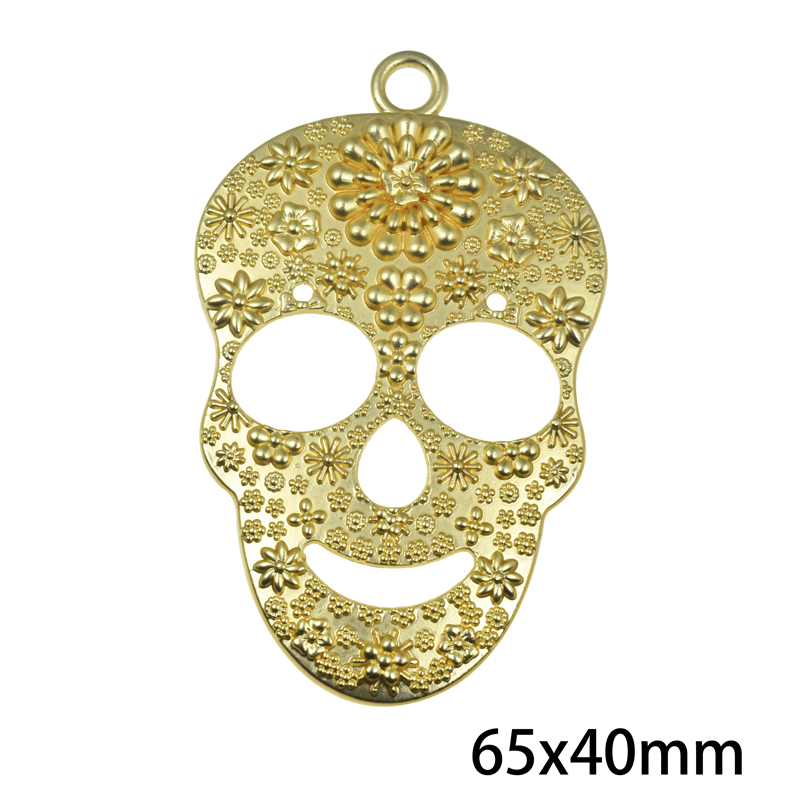 65x40mm Lead Free Pewter Matte Gold Skull Pendant (A42357) quantity