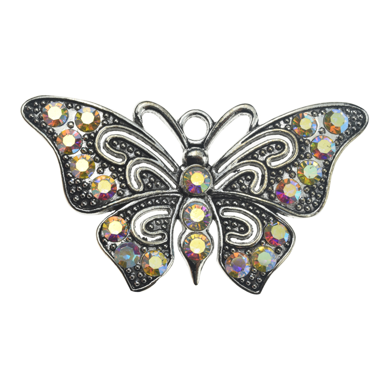 67x37mm Rhinestone with Lead Free Pewter Butterfly Charm(A16135)