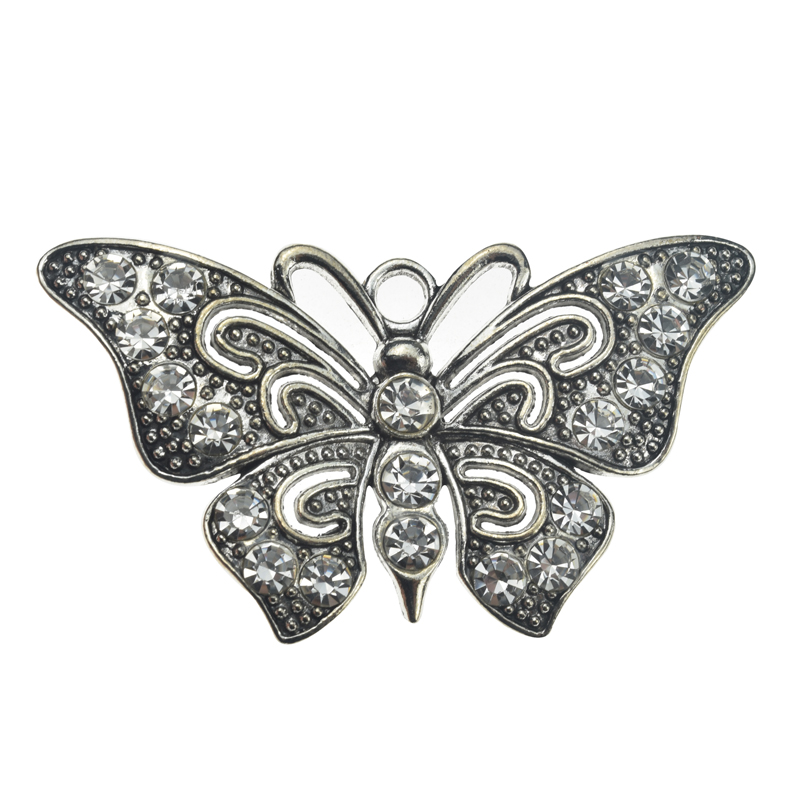 67x37mm Rhinestone with Lead Free Pewter Butterfly Charm(A16135) quantity