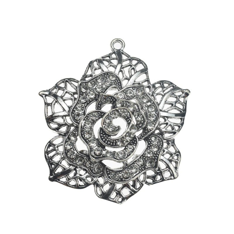 67x58mm Rhinestone with Lead Free Pewter Flower Charm(A16851)