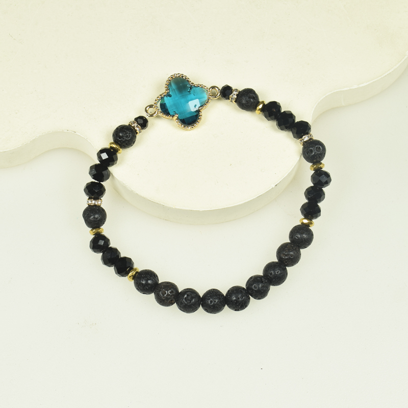 6mm Handmade Lava Rock with Crystal Rondelle Quatrefoil Stretchy Bracelet, Oil Diffuser Bracelet, Gemstone Bracelet (7.5 Inches) quantity