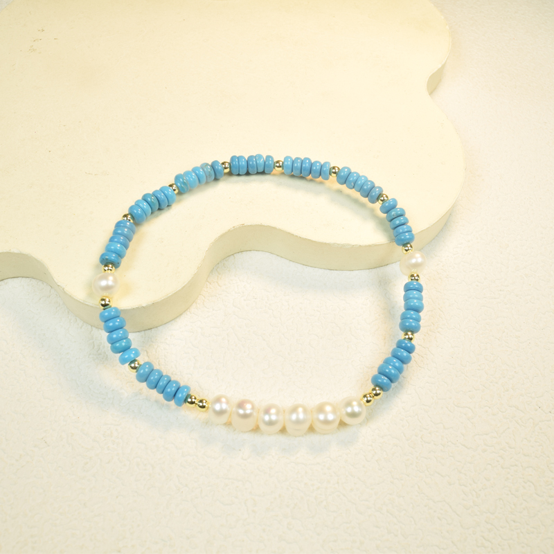 6mm RondelleTurquoise with Fresh Water Pearl Stretchy Bracelet (7.5 Inches) quantity