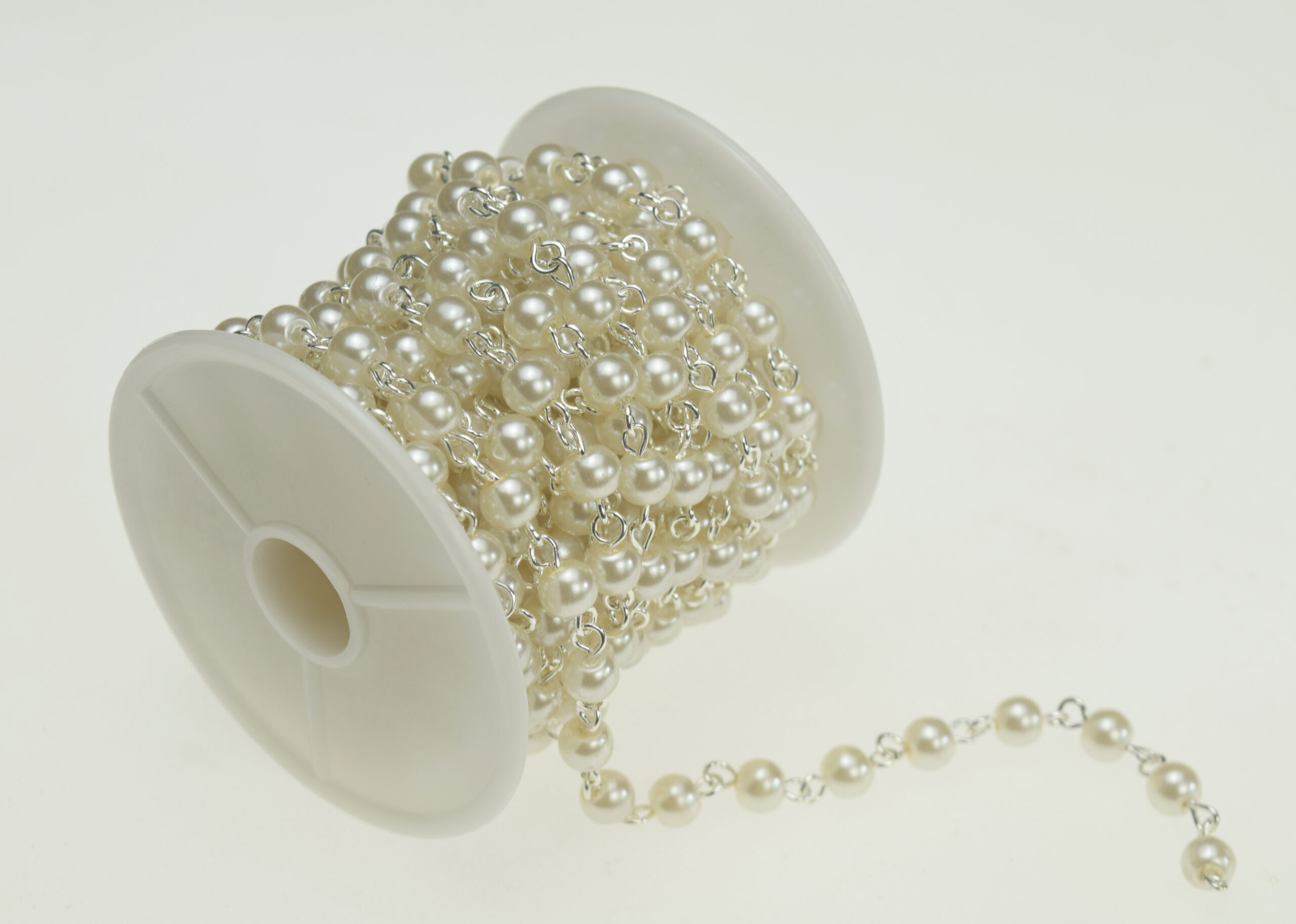 6mm Round Off White Glass Pearl Rosary Chain in Silver Wire ( 16.4 foot per Roll) quantity