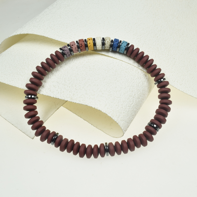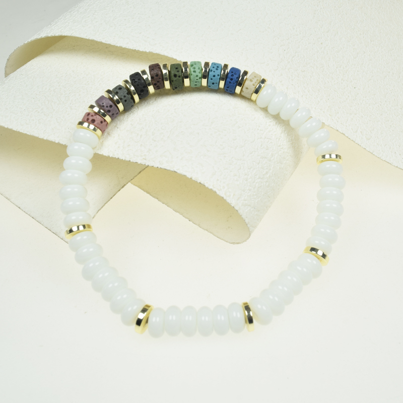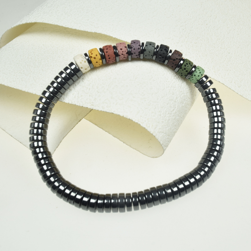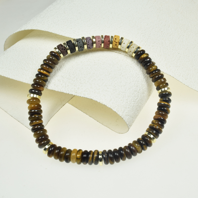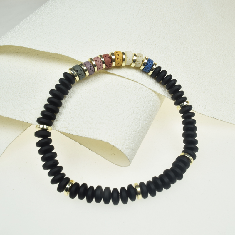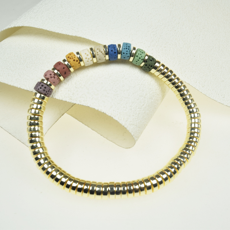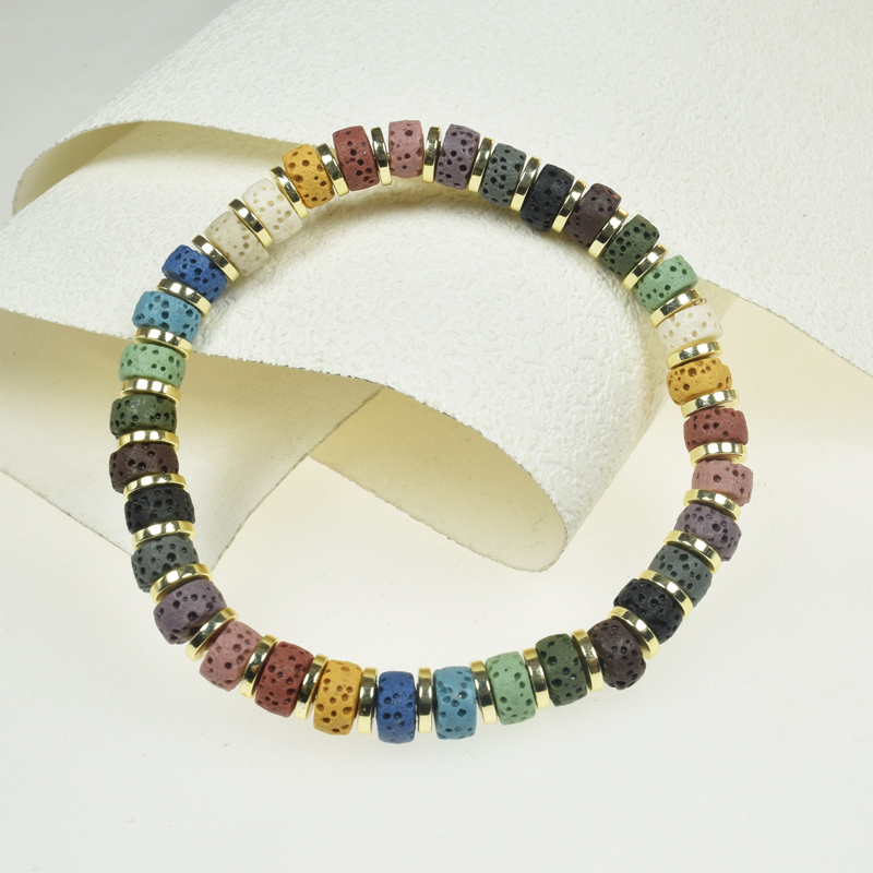 Handmade Lava Rock Bracelet multicolor Lava bead Assorted Gemstones (7.5 inche)